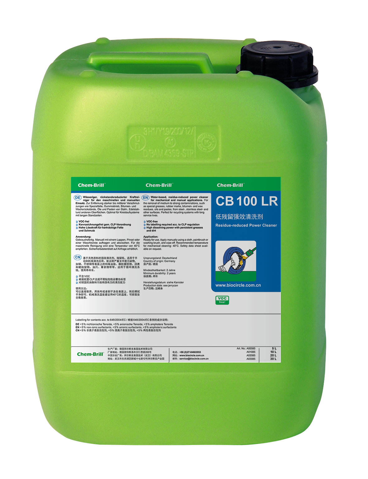 拜尔斯克 CB 100 LR 是一款采取可再生原料为基础原料的碱性水基清洗剂。因此,在具有良好的溶解性能的同时,这款产品不含VOC,而且根据欧盟 CLP 法规不需贴危险品警告标签。此外,CB 100 LR 在清洗过程完毕之后,只留下少量的残留物,从而是传统溶剂型清洗剂的良好代替品。